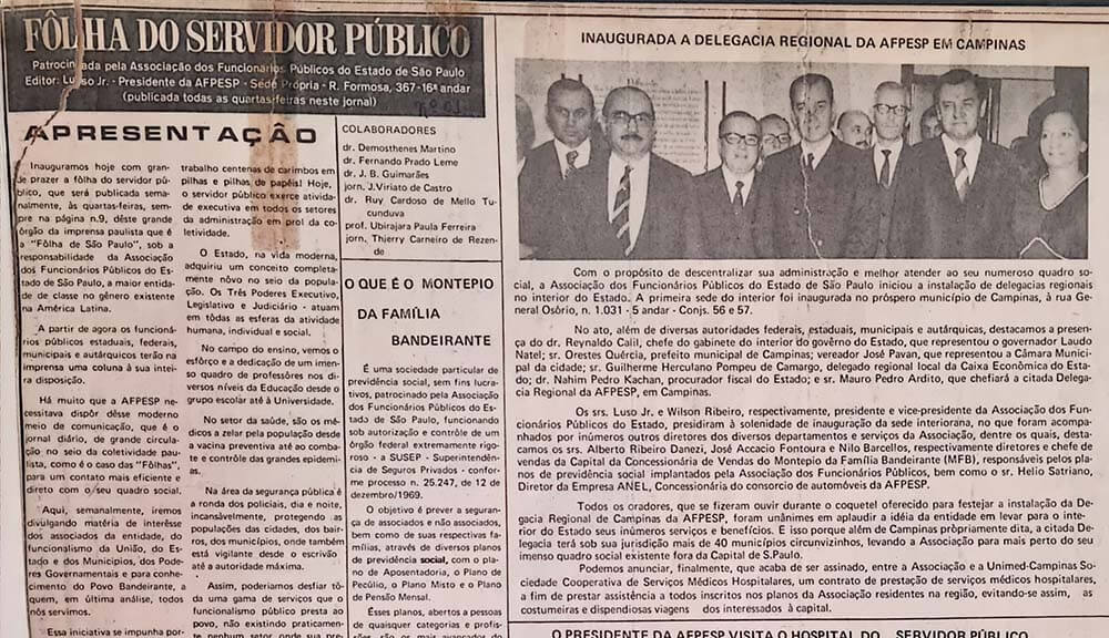 Projeto para descentralização da administração da AFPESP teve inicio com a inauguração, em agosto, da primeira delegacia regional da AFPESP em Campinas, que depois passaria a se intitular como unidade regional.